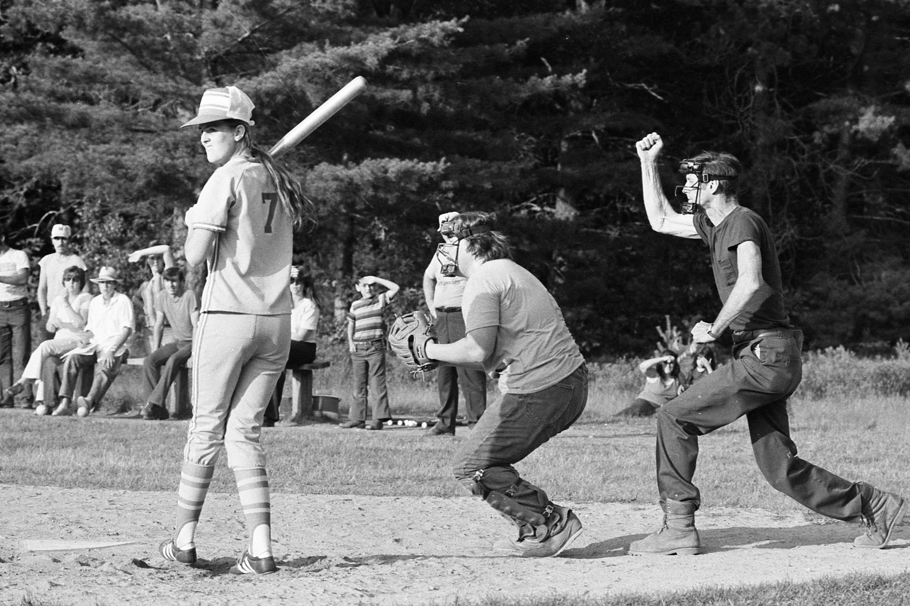 At Bat: Dawn Eldridge and umpire, Donnie Eldridge