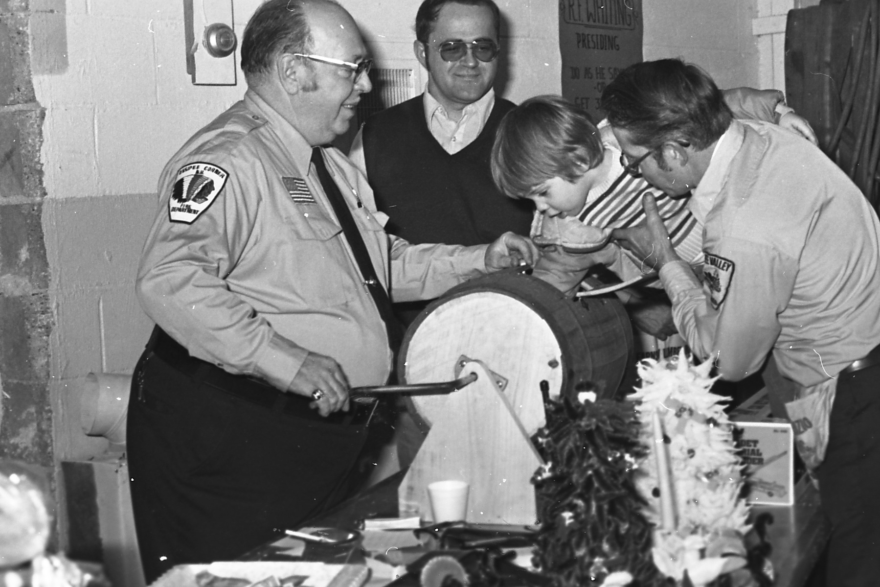 07/24/2017: Susan Ahearn: OCFD Turkey NIght. Russell Whiting, Sr, Frank Riley, the child is possibly Fred Brownell, Ralph Brownell.