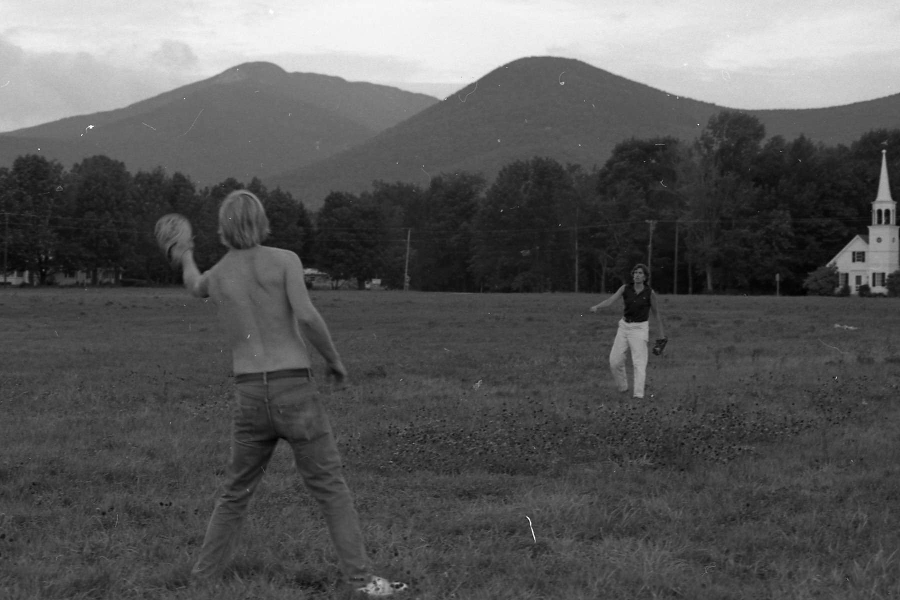 03/31/2017: Ann Burghardt: Tossing the ball, in the field across from the white church in Wonalancet