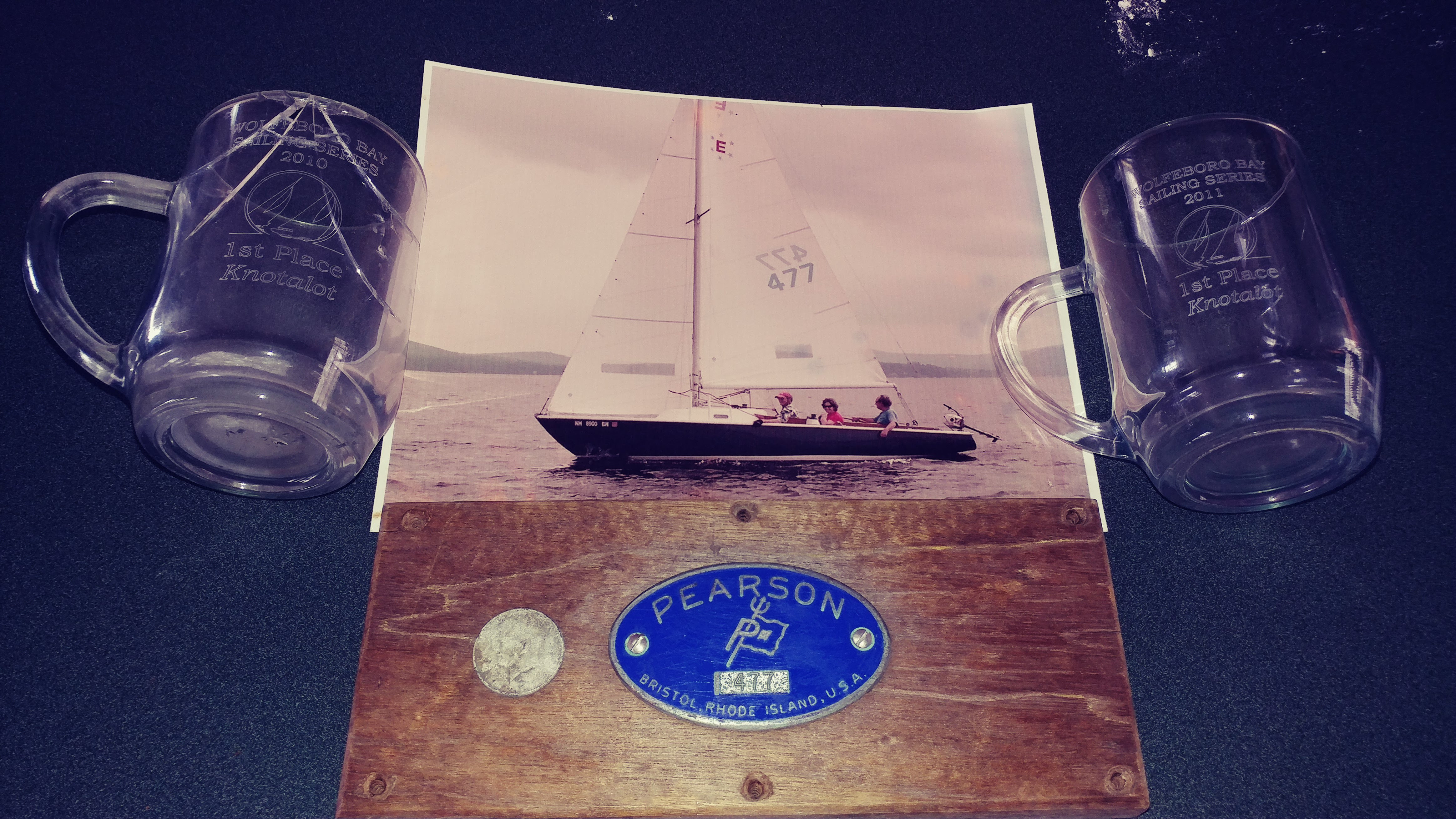 Ensign 477, aka Knotalot was fatally damaged last fall in gale force winds on Halloween night. She was restored to sailing, and competive condition about 12 years ago, and won her share of class and PHRF races. Apparently, winning was in her blood - Her Geneology courtesy John Cutler. I am sad to have to be the one to put her down, but I do so with great respect and pride. I know little about her career before me, but in the last 12 years she has brought me, my wife, and many friends great joy. There are many parts of her that other ensign owners may need or want, and that is why I have put together this website. There is a page with all the major parts and my asking price, along with notes about each. Email me with any questions at ksimp@ksimp.org