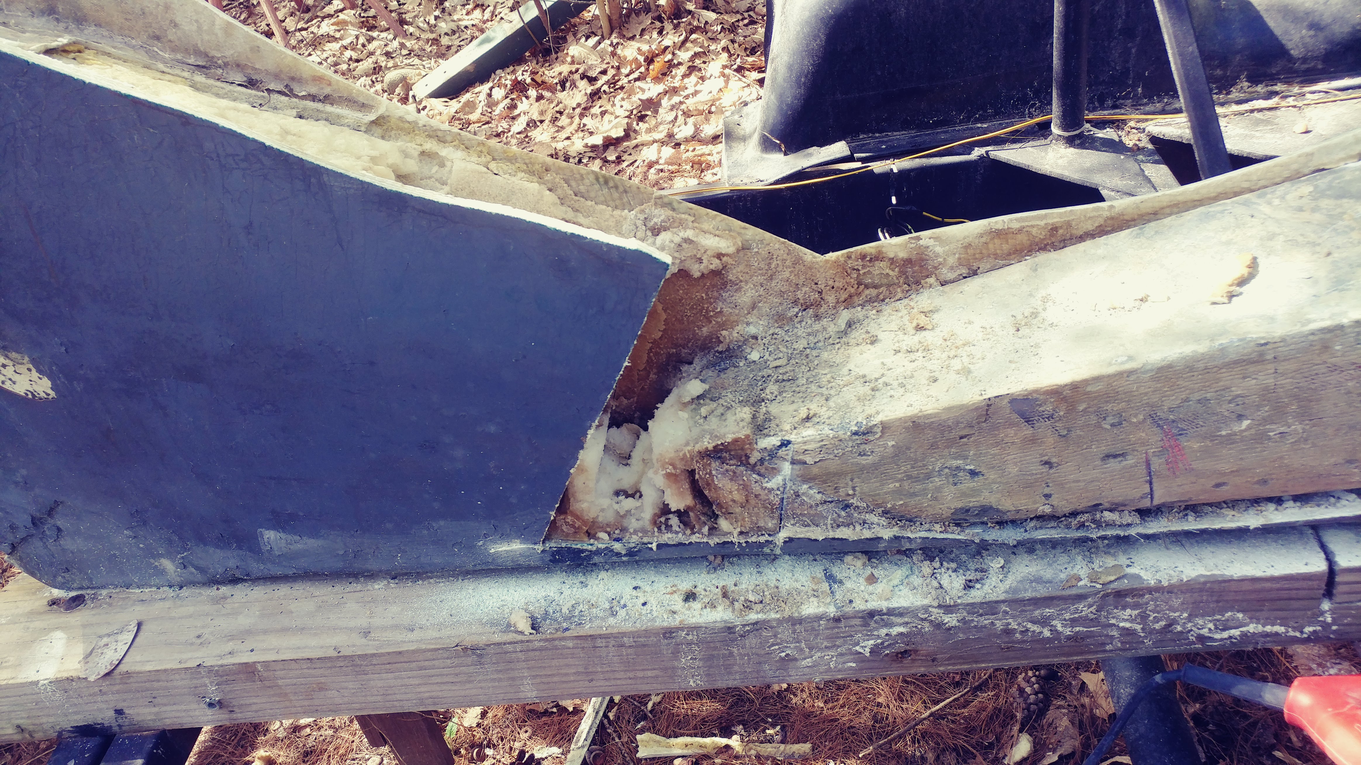 The foam that is in the rear section of the keel, behind the lead, was pretty saturated. I will say, that once the cut seen above was made, the foam dried out some. I have worked with saturated foam that NEVER would dry out before, but Ensign owners might get some comfort knowing that if you drill holes in the lower rear part of the keel in the fall, perhaps a lot of the foam will dry out, and perhaps "weeping" through the glass will dissapate. Alternatively, one could cut open the aft portion of the keel and dig out the foam, and replace it with new foam after drying everything out. Then of course reseal the top of the keel (bottom of the bilge) really well.