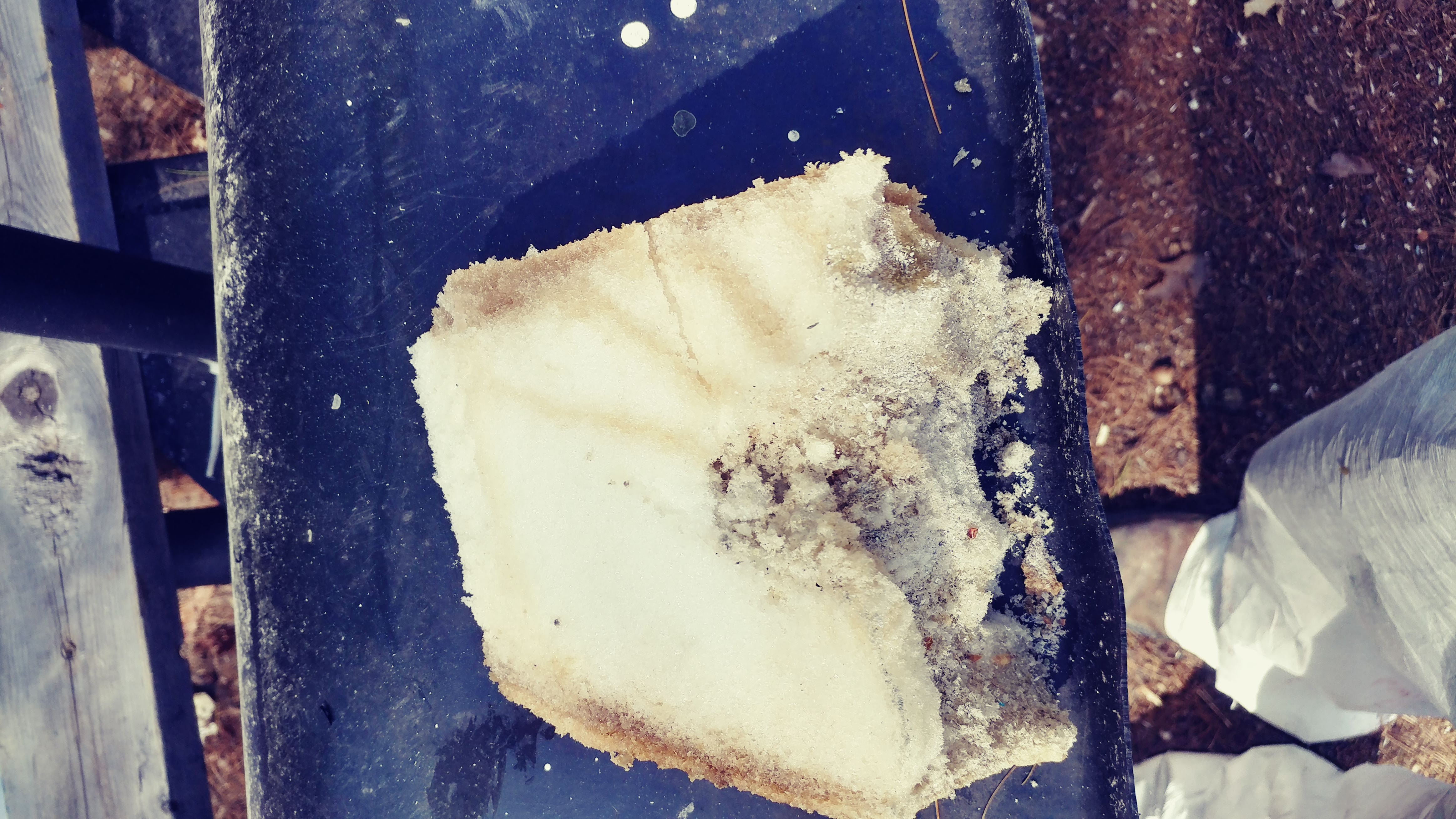 A piece of foam cut from the aft portion of the keel. Actually dry in the middle, but wet on the edges.