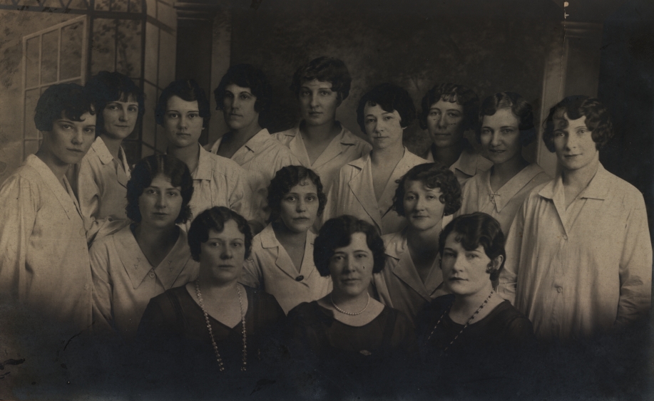 05/19/2013: Keith Simpson: Well here's the latest styles of the 20's for you! There's Nan, front and center. Looks like she had quite a little enterprise going. When I knew her she still curled her own hair with a curling iron. Could get a little smelly of burnt hair.