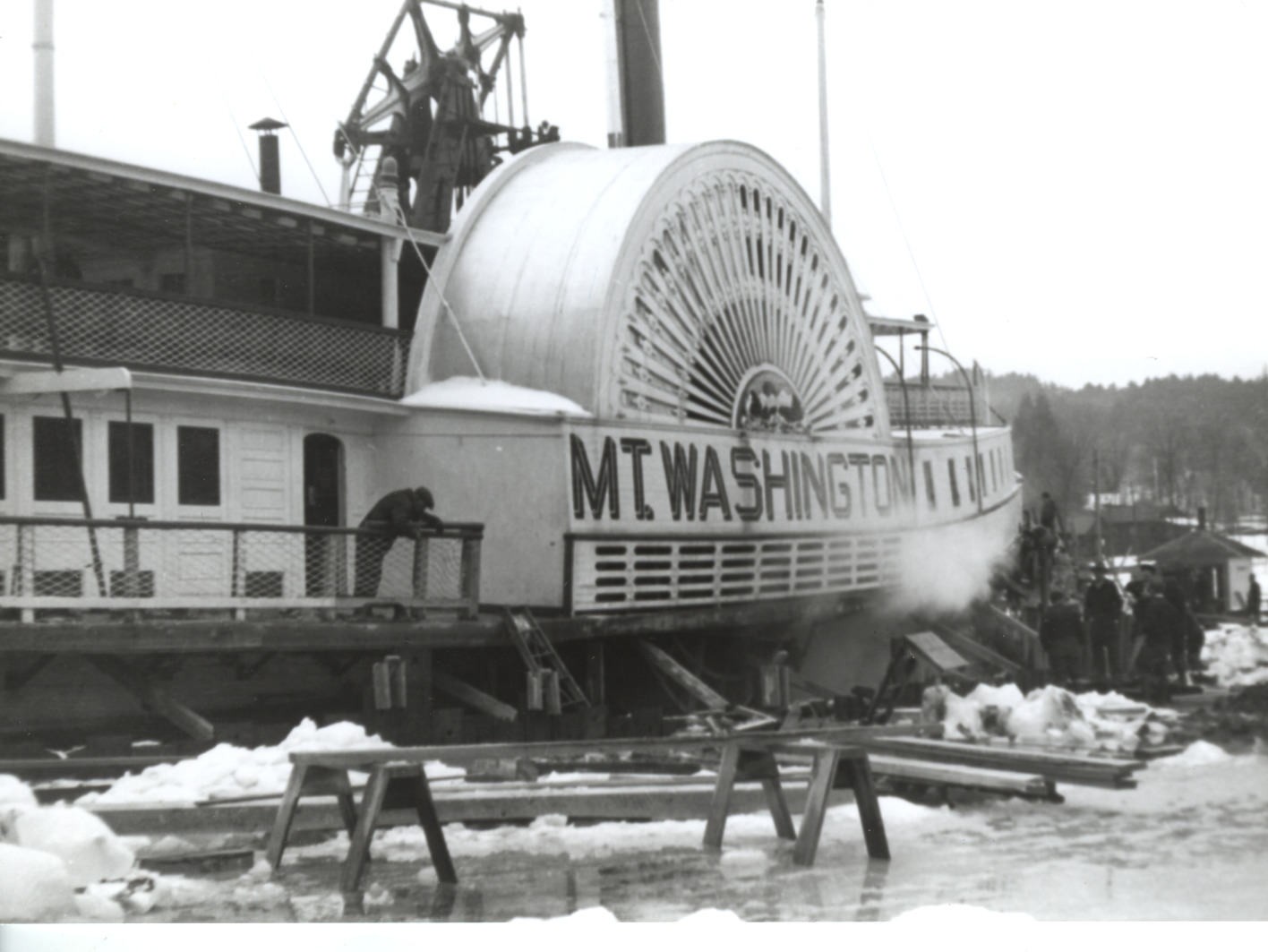 The 1872 Mt. Washington undergoing repair work in Center Harbor, 1937.