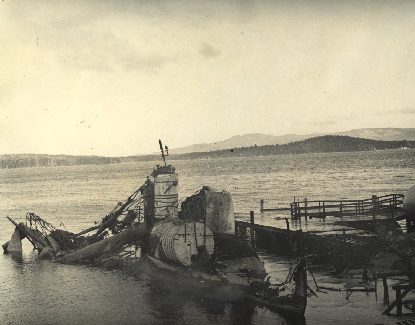 Remains of the 1872 Mt. Washington, after it burned at the Weirs in 1939.