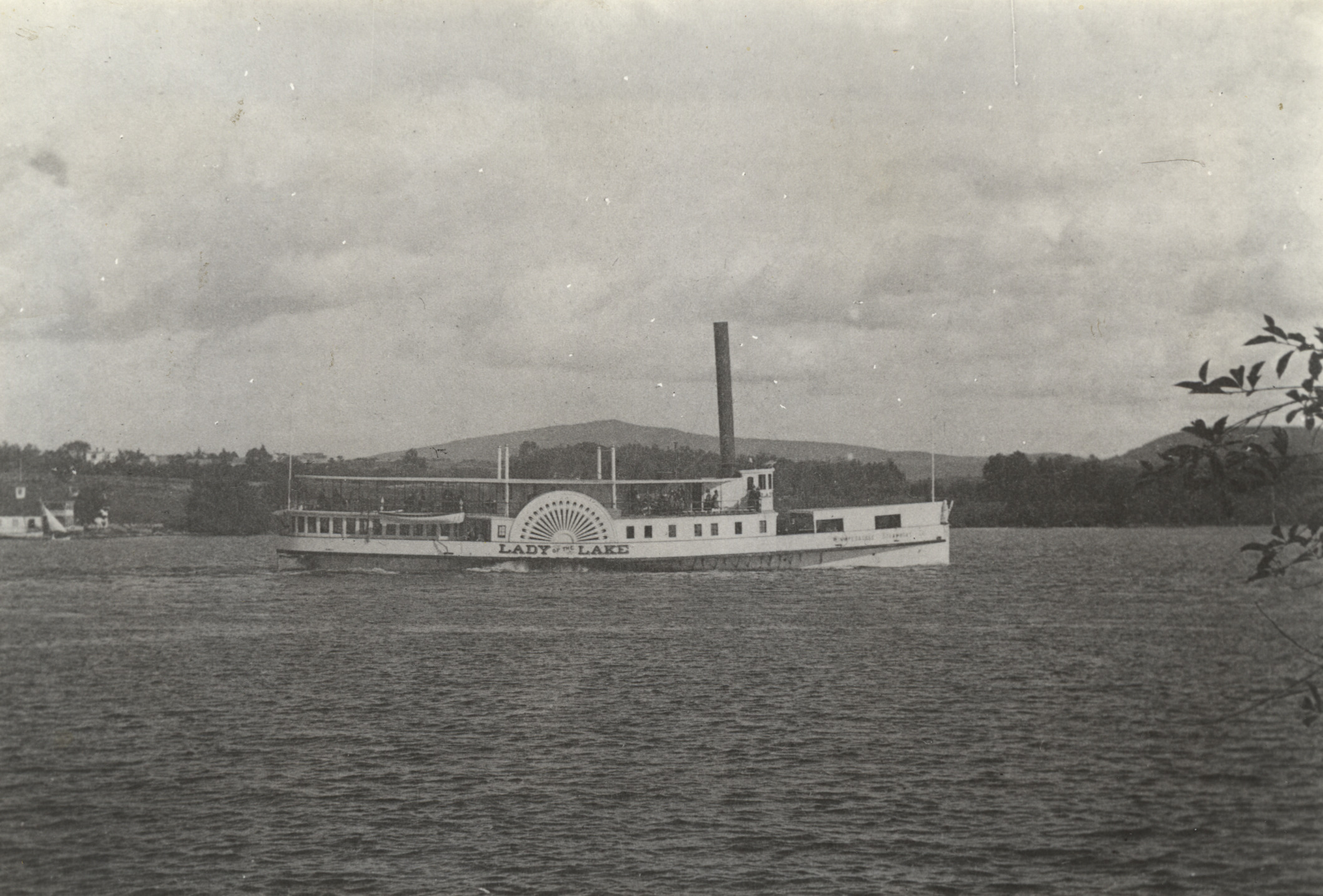 Lady of the Lake in Wolfeboro Bay. Copple Crown Mountain is in the background. Taken 1893 shortly before the boat was retired.