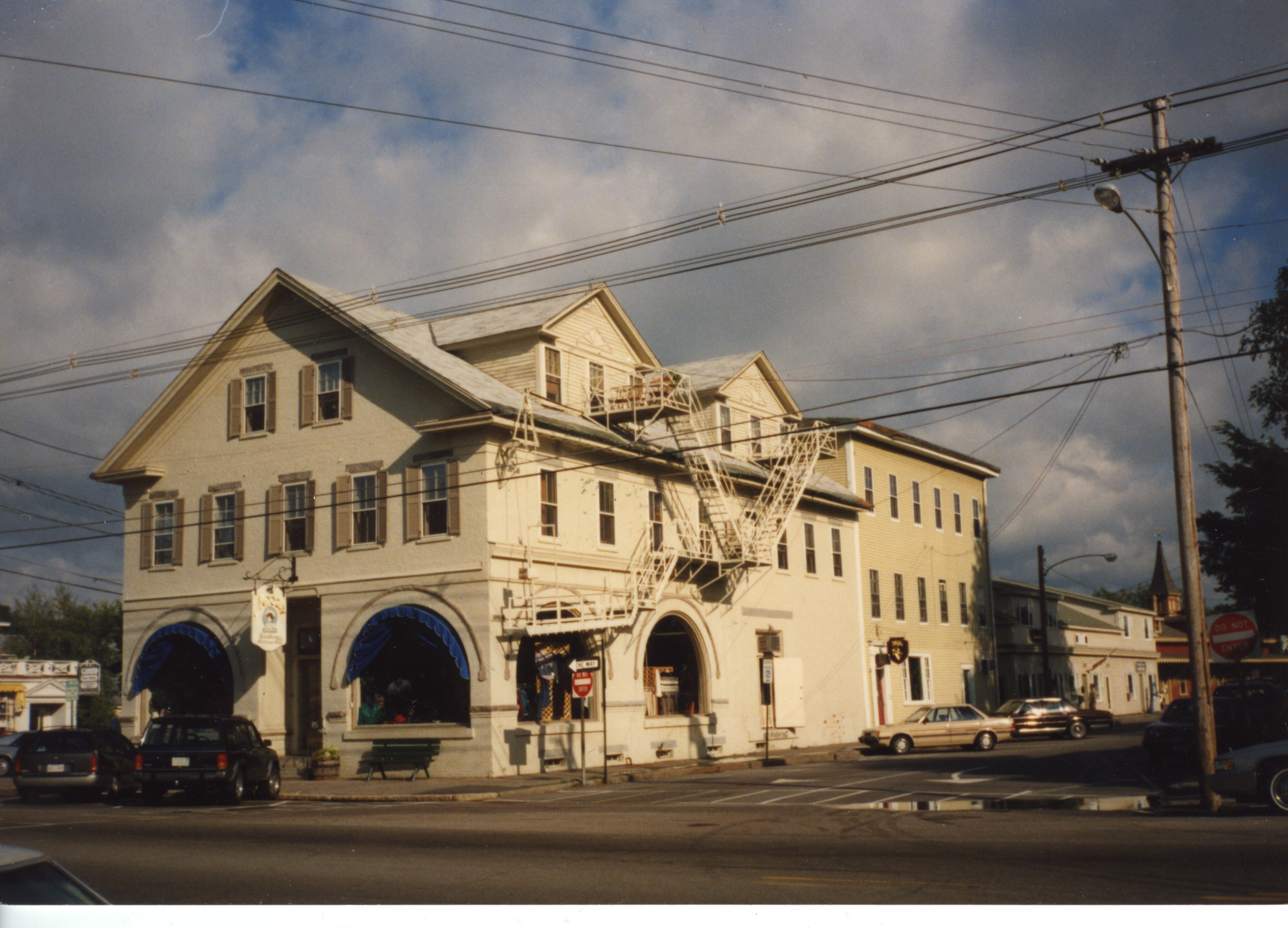 The Bank Building and the buildings behind it in Oct. 1989, looking as they do today. The storefront at the time was Mood's Clothing Store; at present it is a real estate agency.