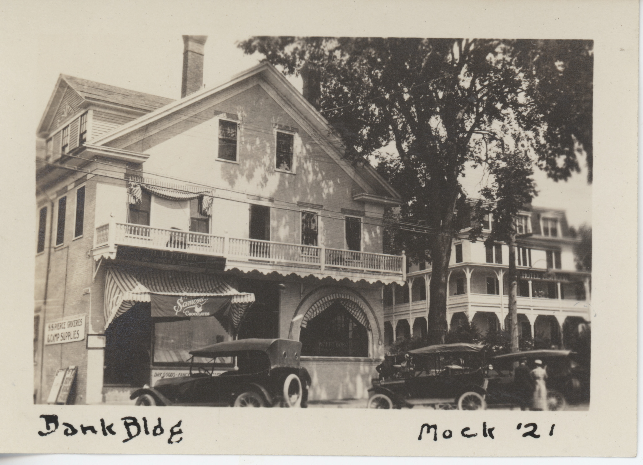 This is the Bank Building in 1921. The building on the right is the Hotel Elmwood, torn down in 1935 and replaced by the present Post Office.