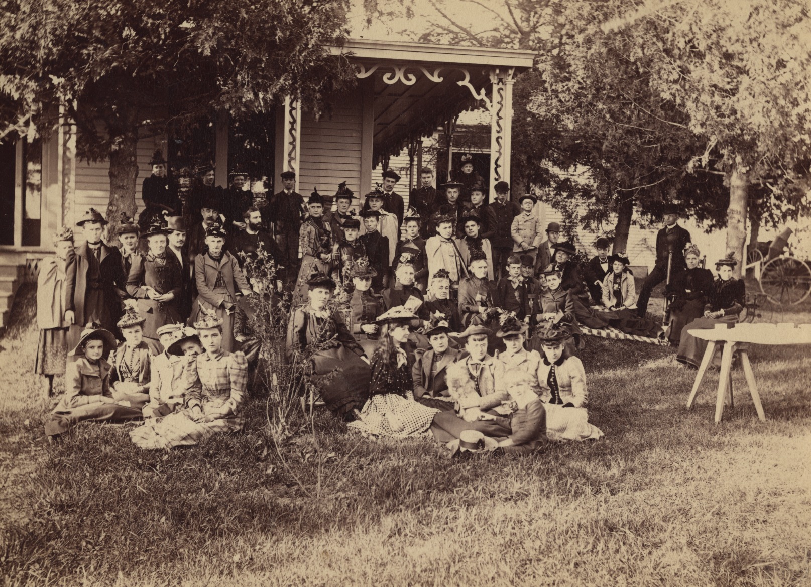 First Congregational Church group lawn party, c. 1880's, at the home of Rev. and Mrs. Theodore C. Jerome, on South Main Street. Rev. Jerome was the Church Pastor for a year, until he and three of his children drowned in Lake Winnipesaukee on June 26, 1886. In 1907, the Jerome house became the first Huggins Hospital. The site is in the woods between the Kingswood High School and the 18th hole of the golf course; there is a marker on a stone at the site. Larger version of seventh photo in this group.