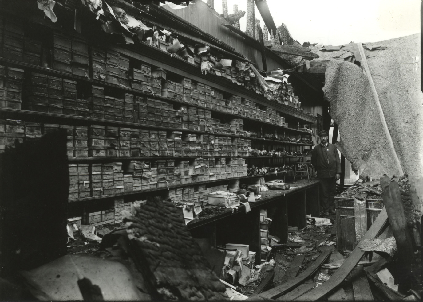 Interior of Edgerly's Shoe Store after the 1899 fire.
