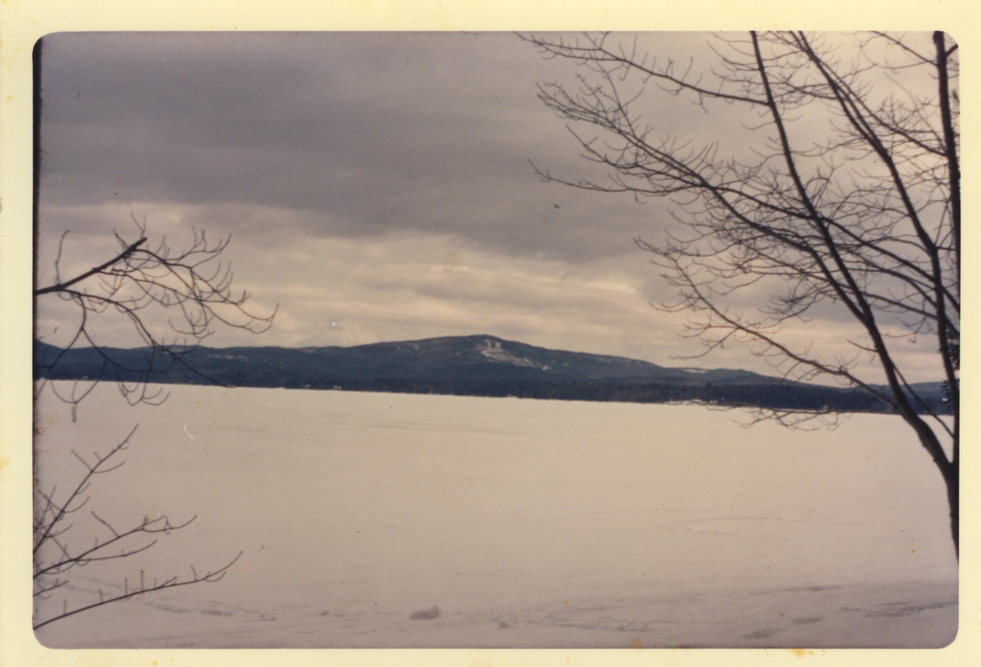 View of Copple Crown Mt. across Lake Wentworth, from Bernice's Camp. The open area on the Mountain is a small ski area, cleared when the area was developed, no longer operating.