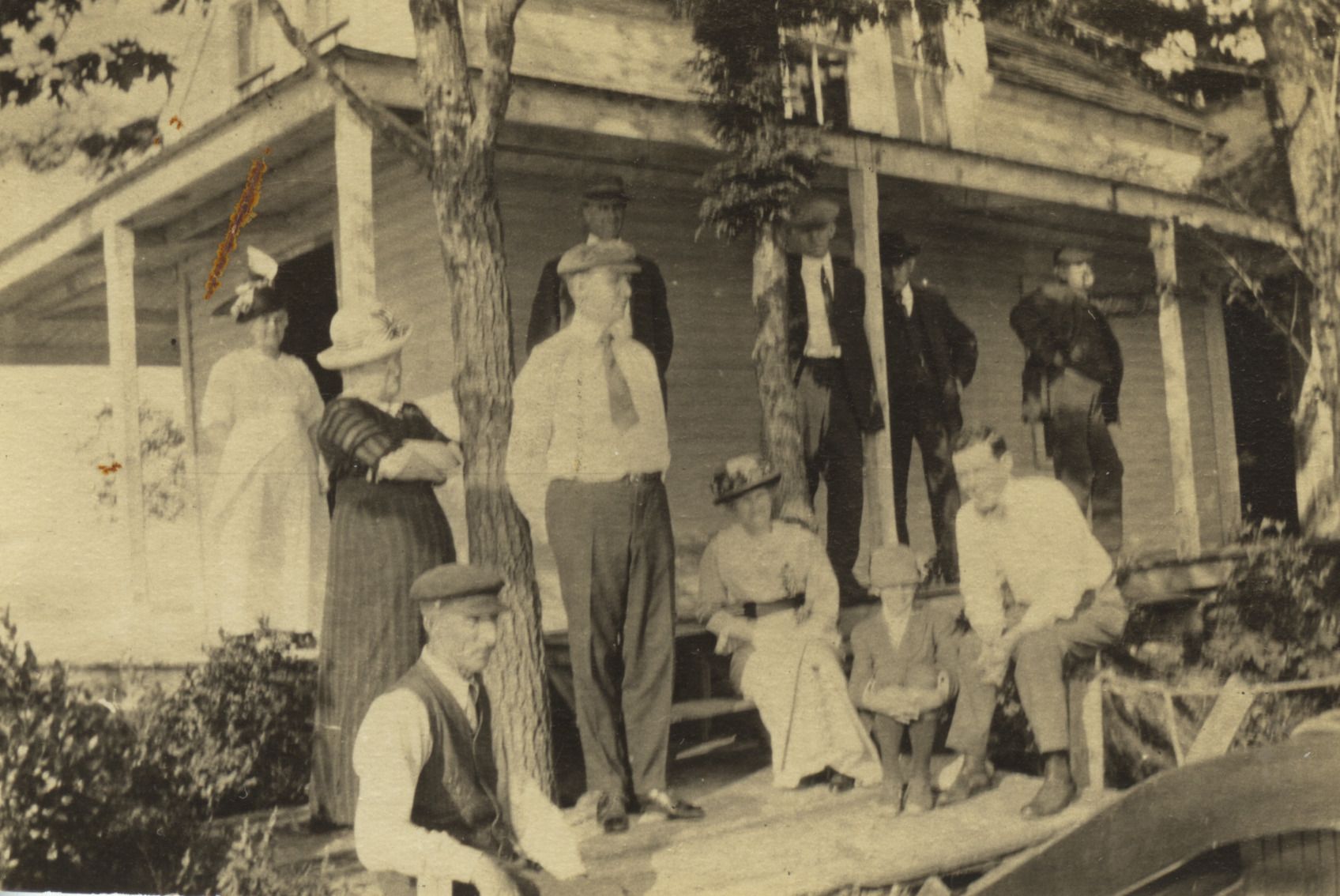 Stamp Act Island in Lake Wentworth was named after the British Stamp Act of 1765, imposing taxes which the Americans considered unfair. In the early 1900's the island was owned by Sarah M. Hodge (local furniture dealer) and John L. Peavey (prominent businessman, Peavey Block) who died in 1910. This is the Peavey cottage, early 1900's. People are not identified. The island became a wildlife preservation in 1977 and the last building was removed in 1978.