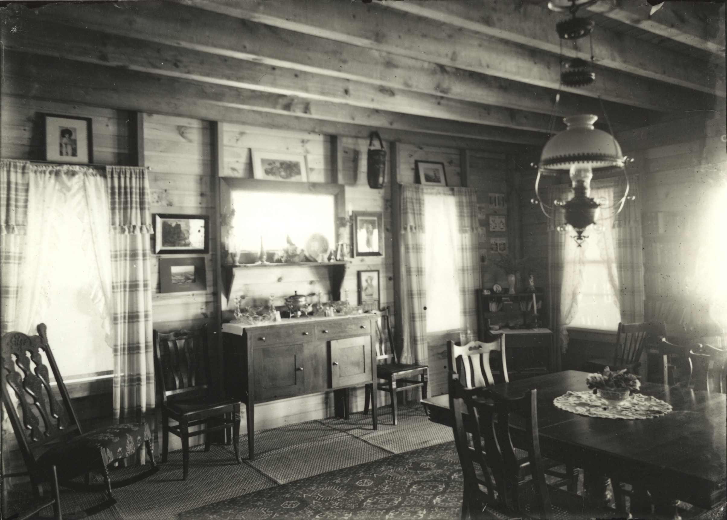 Interior of the Augustus V. Healy camp "Laurallan" on the Townsend Shore of Lake Wentworth, off Pleasant Valley Rd. He was from Plainfield, NJ, president of the Farmers Loan & Trust Co. The camp name came from his two sons, Laurance and Allan.