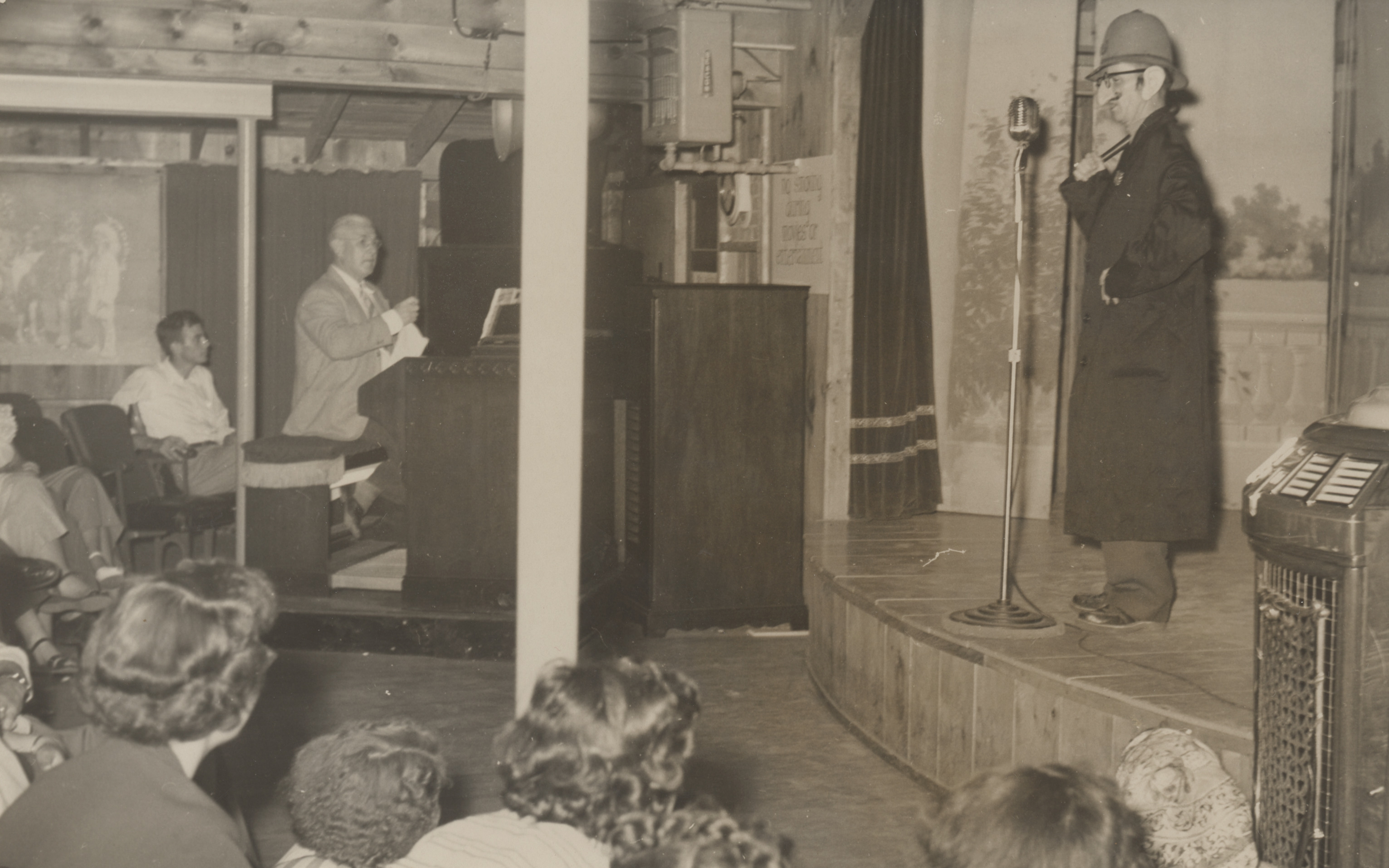 The Allen "A" Resort on Route 28. For history, see photos 35-37. Some of the amenities of the Resort are also on photos 55-71. This vaudeville comedian produced a mystery complete with musical accompaniment. A common twist of the era was that the plot would change as the audience guessed who the murderer might be. 1950's.
