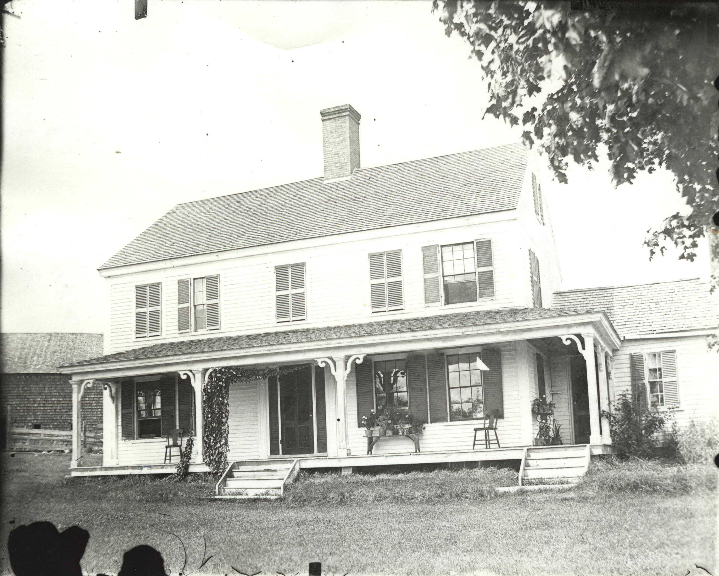 The Joseph Young farmhouse at Wolfeboro Center, c. 1896. Much like the earlier photo. At some point, the chimney was removed and replaced by 2 chimneys, as the heating system was centralized.