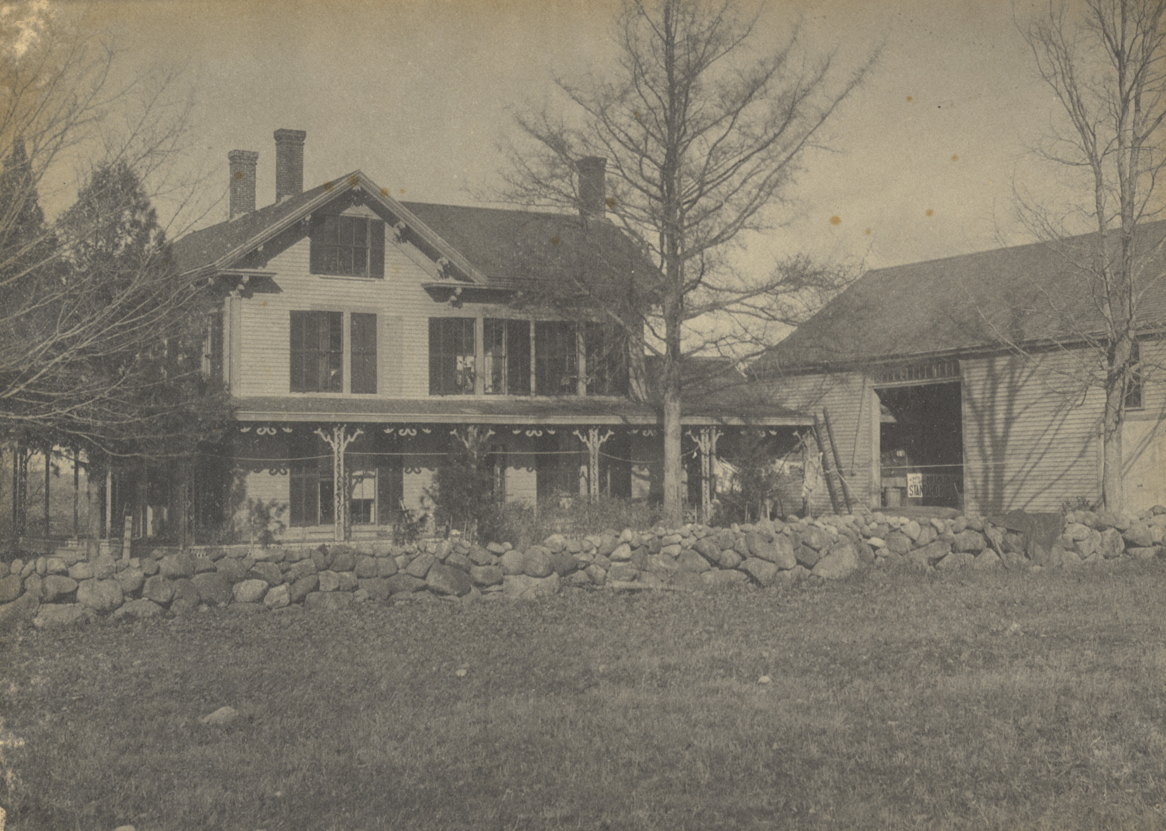 Homestead of Rev. Jerome of the First Congregational Church on South Main St., c. 1900. This house was the first location of Huggins Hospital in 1907. Located between the Kingswood High School and the golf course, a stone marker is now there.