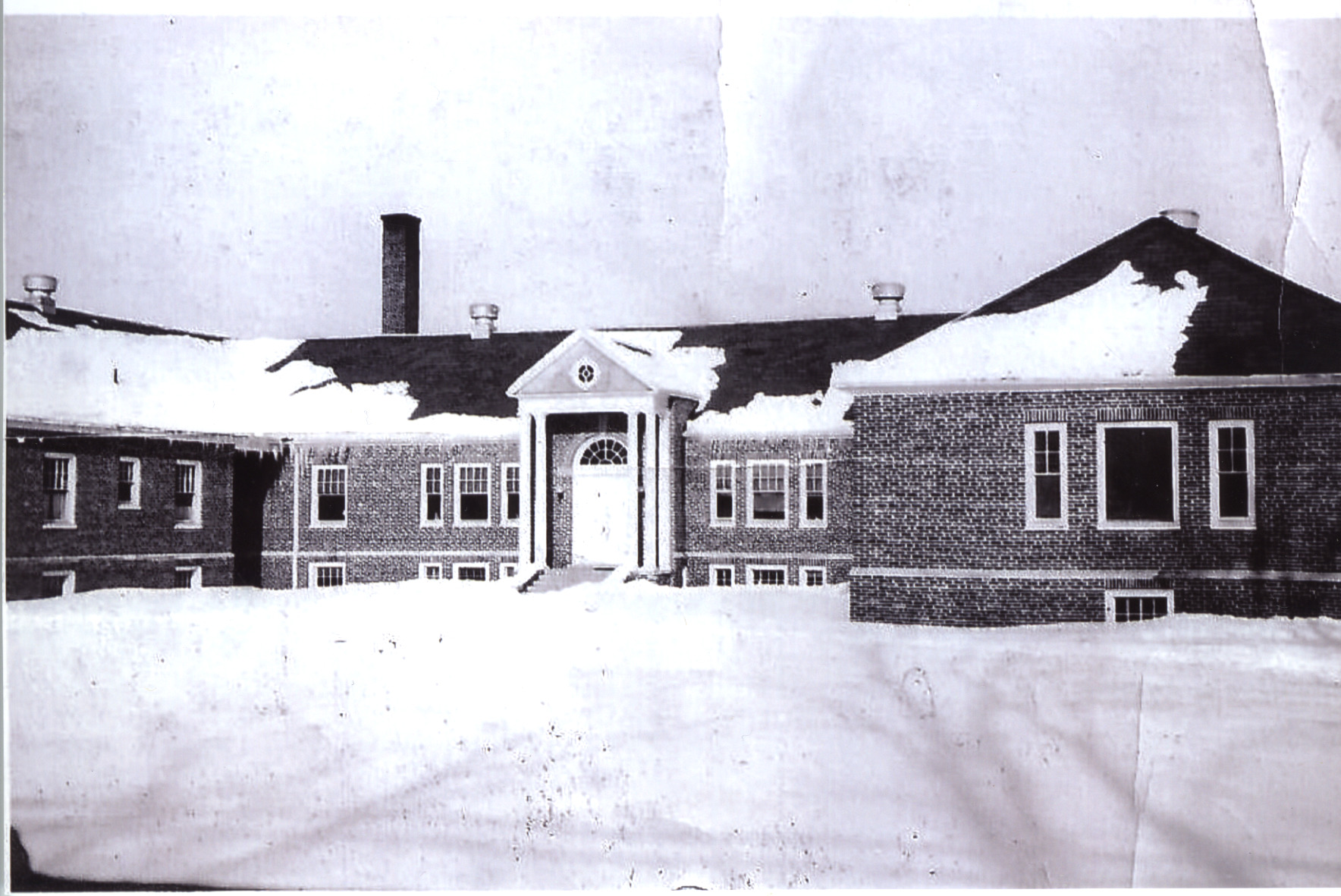 Winter view of the 1924 Huggins Hospital.