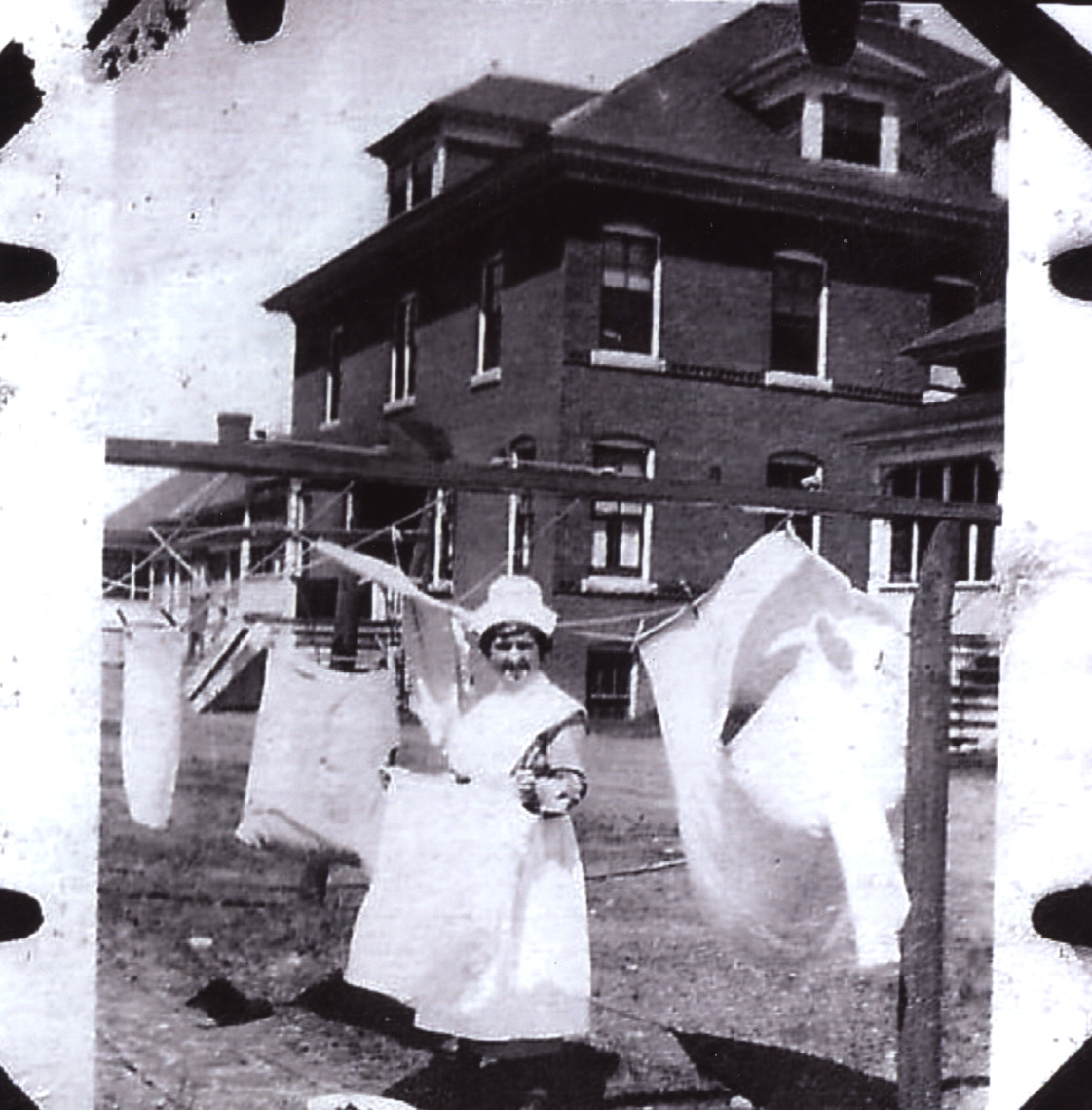 Nurses chores. Old photo is marked 1921, but location doesn't seem to look like the original house. Since this photo came from a family album, it may be another place the nurse worked.