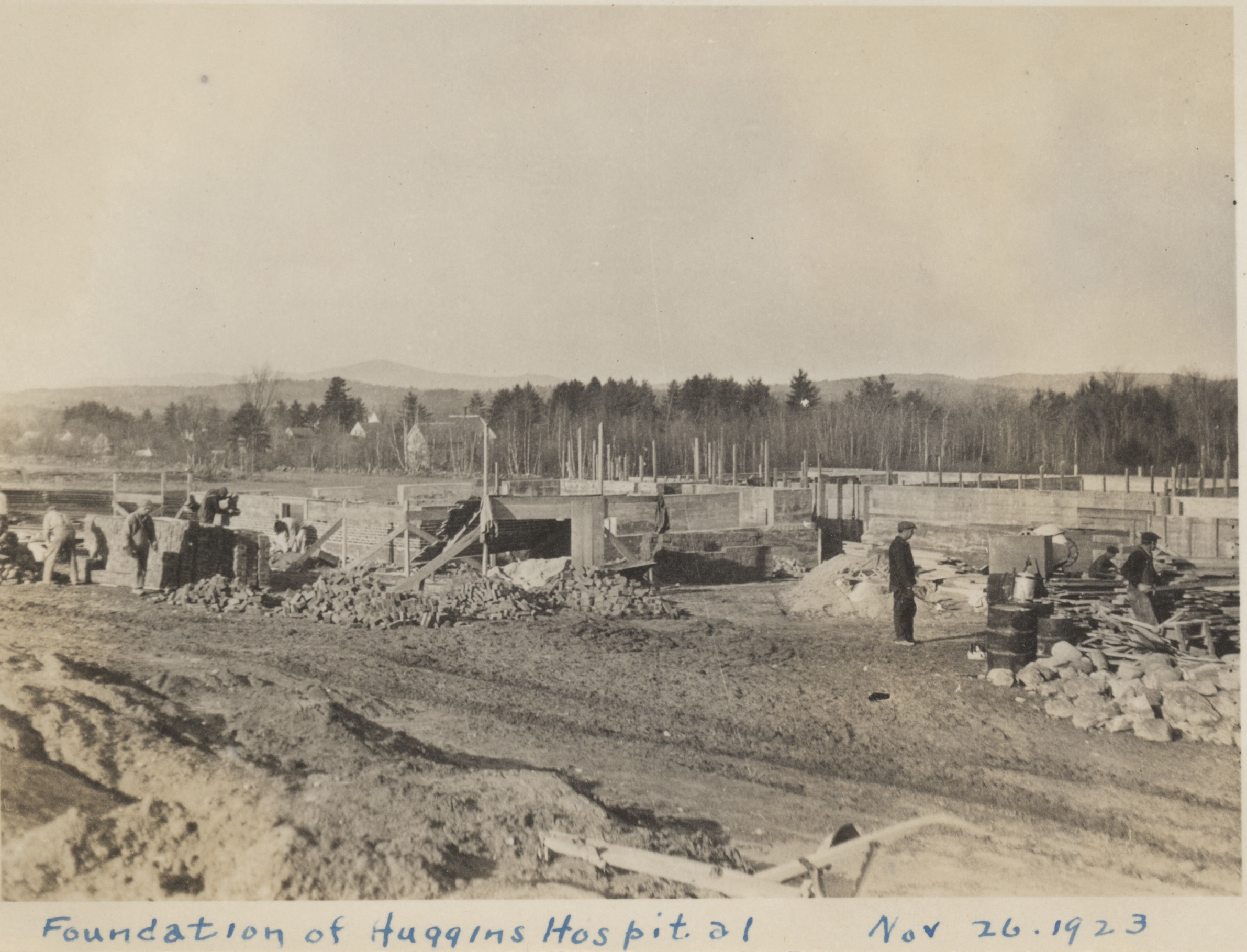 Foundation work for the new Huggins Hospital is in progress, Nov. 26, 1923. The completed building was dedicated on Nov. 11, 1924.