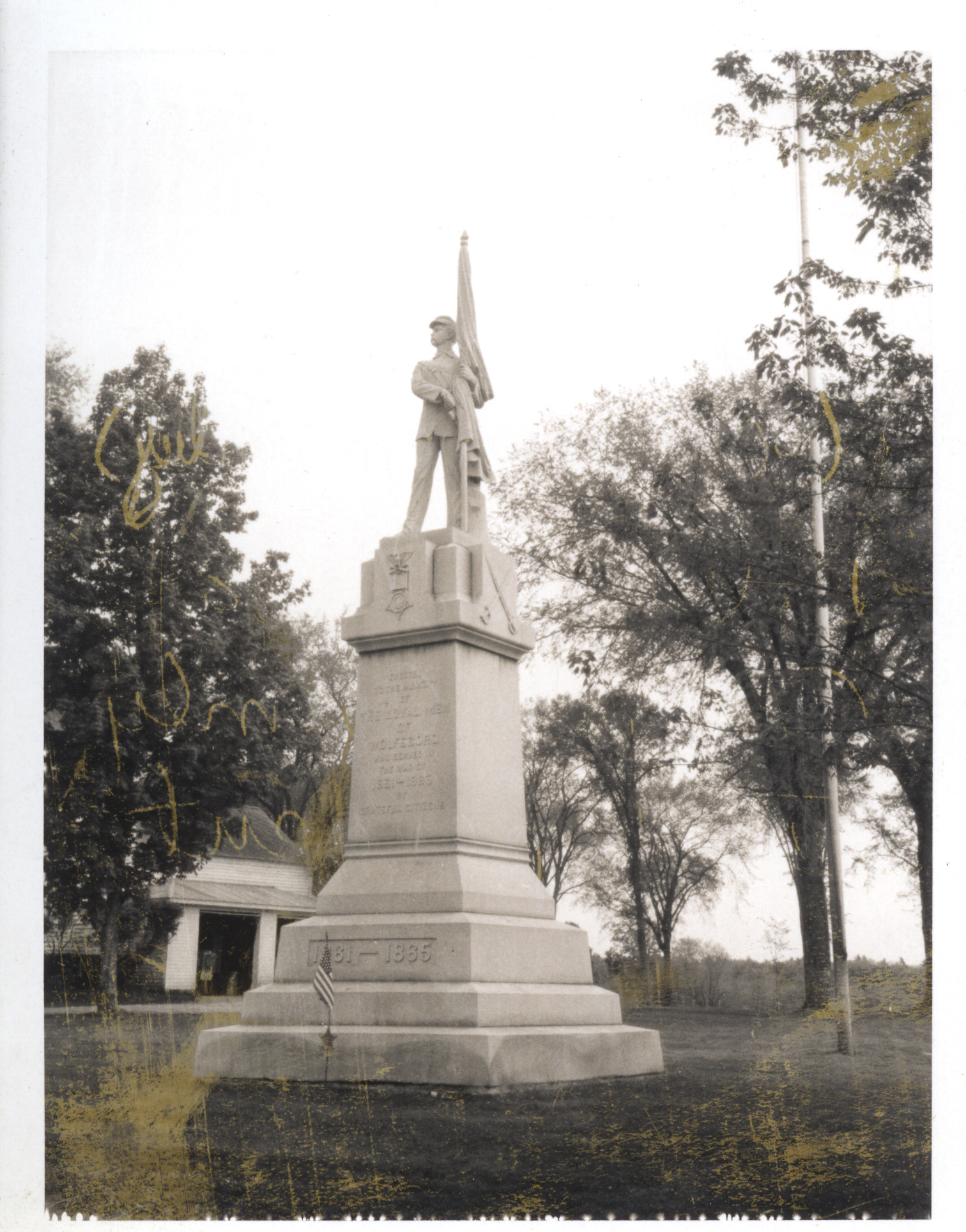 Soldier's Monument, located at Pickering Corner, the junction of South Main Street and Center Street (Rt. 28 and Rt. 109). This Civil War statue has the official name of Memorial to Loyal Men of Wolfeboro. The statue was dedicated on Columbus Day, Oct. 14, 1914, with Judge Sewall W. Abbott as master of ceremonies.