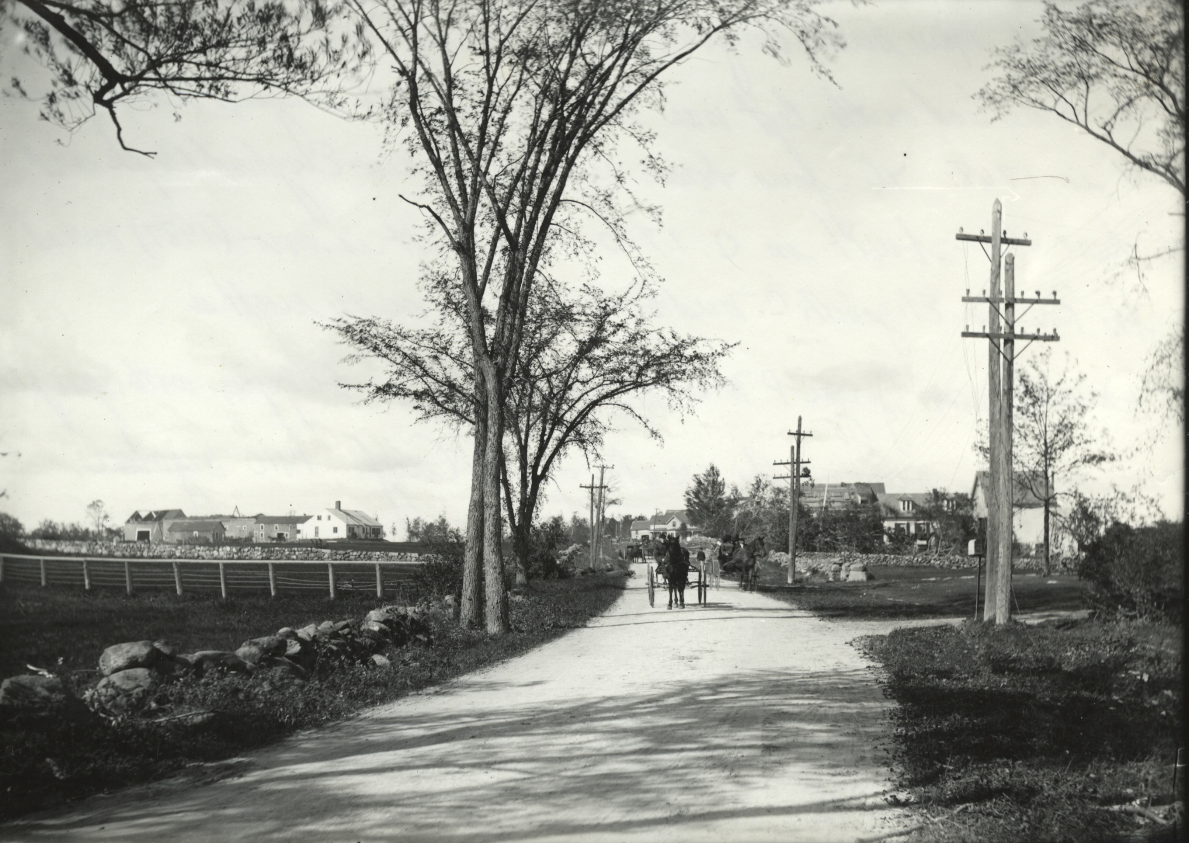 October 1, 1910 tornado. Rubbernecking after the tornado on North Main St., four buggies coming to view the damage. Looking north west just past Forest Rd., the farmhouse on the left (whose land extended to the lake) was the fifth lot of the original seven farms settled in 1768. The house was likely built c. 1770-1775, and still stands today at 332 North Main St., but the barn unfortunately burned down in 2018. The nearby Lakeview Cemetery suffered extensive damage, with monuments and gravestone toppled and broken.