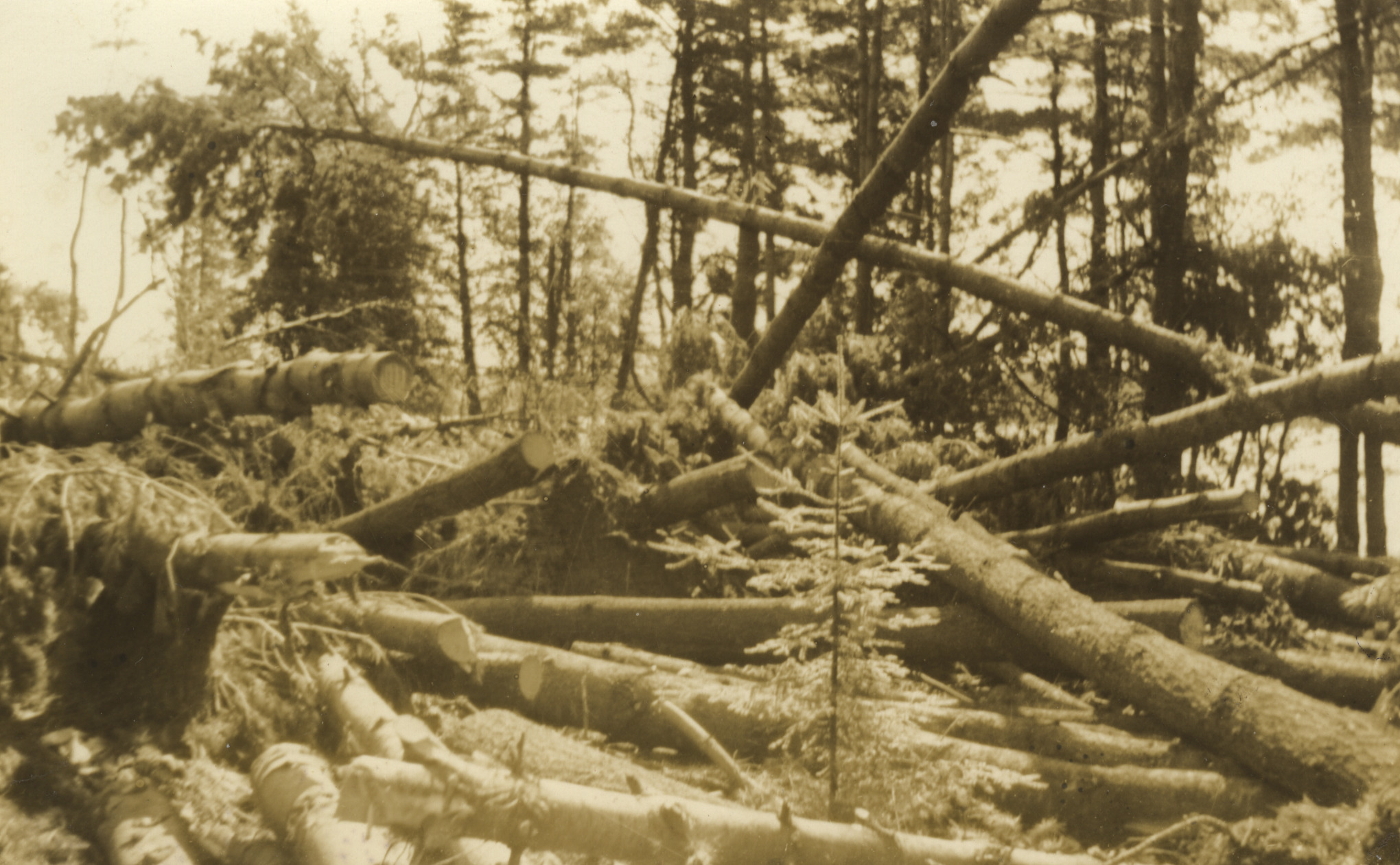 Sept. 21, 1938, hurricane. These logs were the remains of Palmer's log cabin on Keewaydin Rd., which was completely demolished.