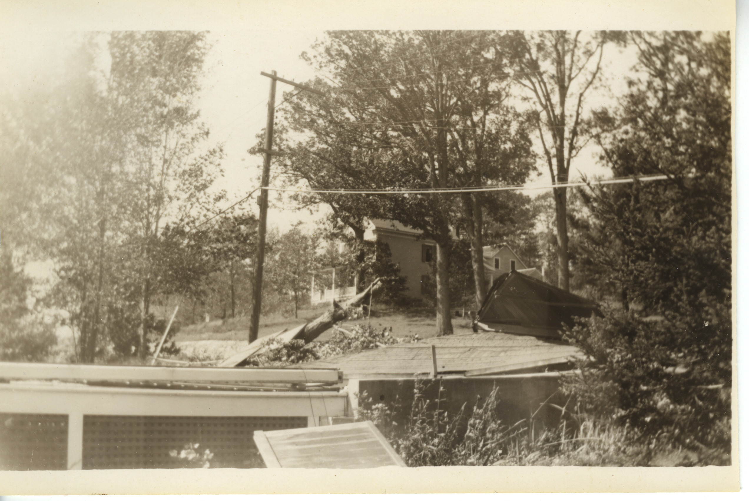 Sept. 21, 1938, hurricane. Tree and building damage on Center St., Wolfeboro Falls, near the Baptist Church Parsonage, next to Daniel Paris's house.