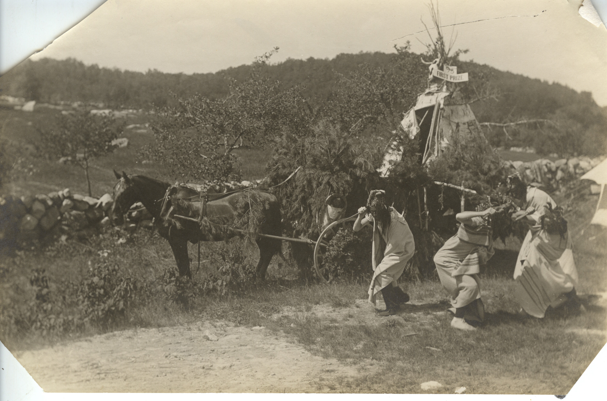 Old Home Day, c. 1900. Dancing at a pseudo Native American encampment. Many lodges and societies existed at the time; some called themselves Tribes.