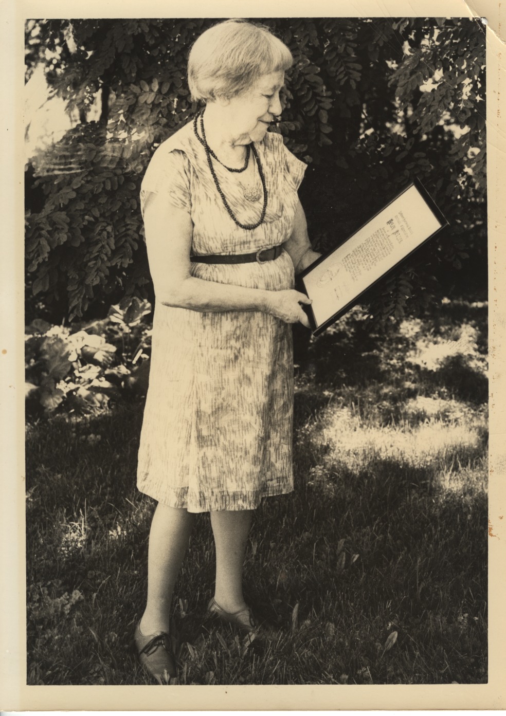 Helen Fetzer, getting a Certificate of Appreciation, July 1977.