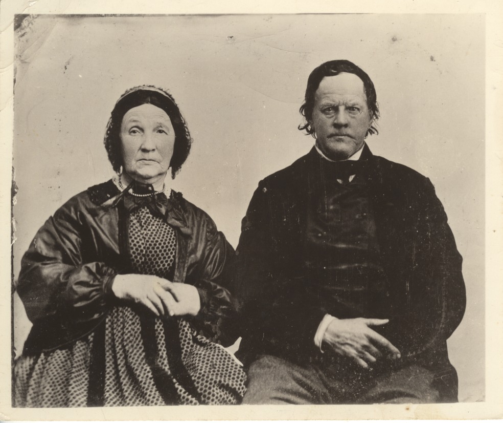 Jacob and Elizabeth Smart Folsom, came to Wolfeboro in 1789 from Newmarket, NH. The First Christian Church was founded in their kitchen in 1812. This picture was made from a tin type.