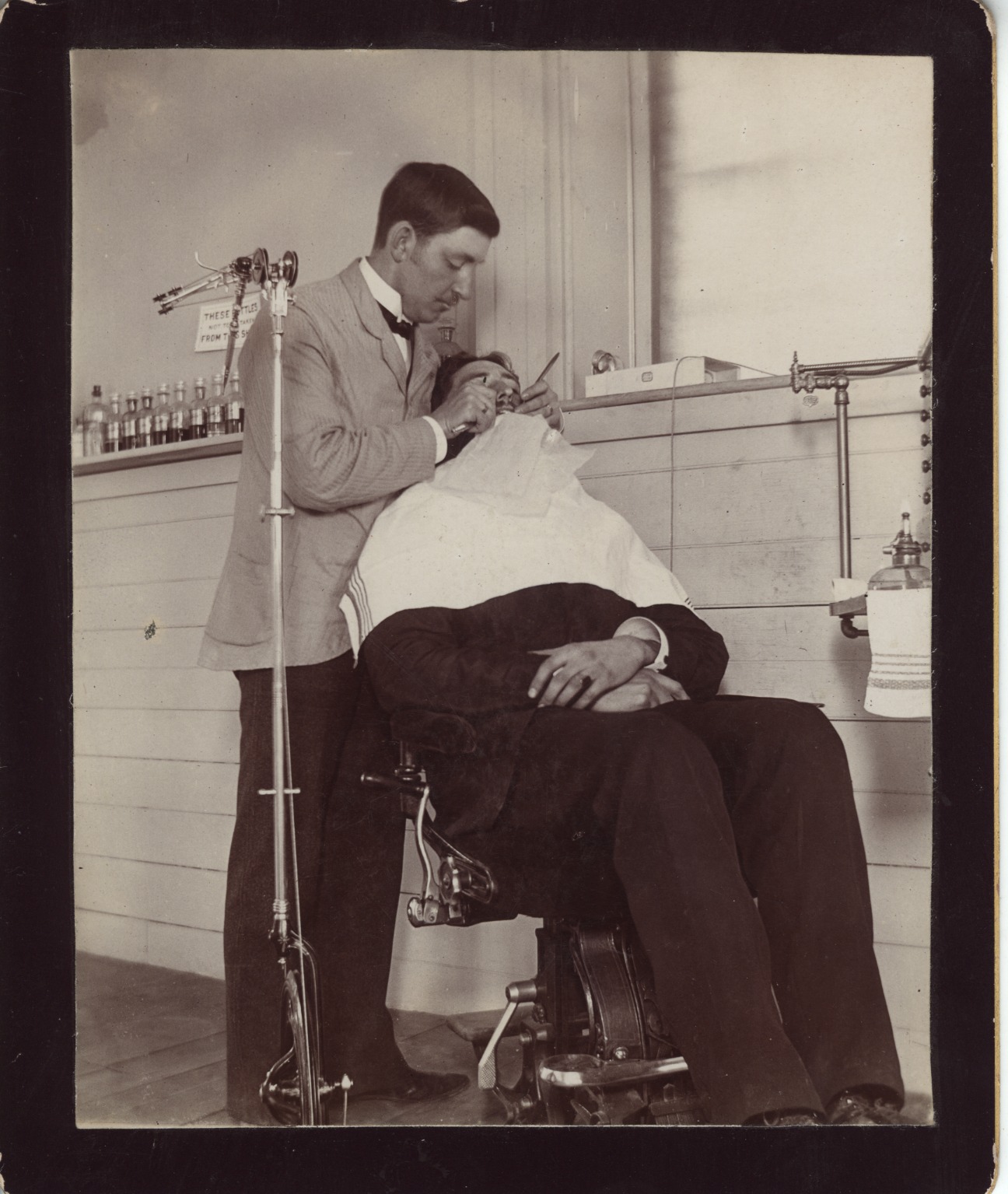 Dr. F. E. Meader at Harvard Dental School. he graduated in 1894, then set up offices in Boston and Wolfeboro (in the Goodwin Block) by 1895. In 1899, he installed an electric light in his office, one of the first businesses in Wolfeboro to do so.