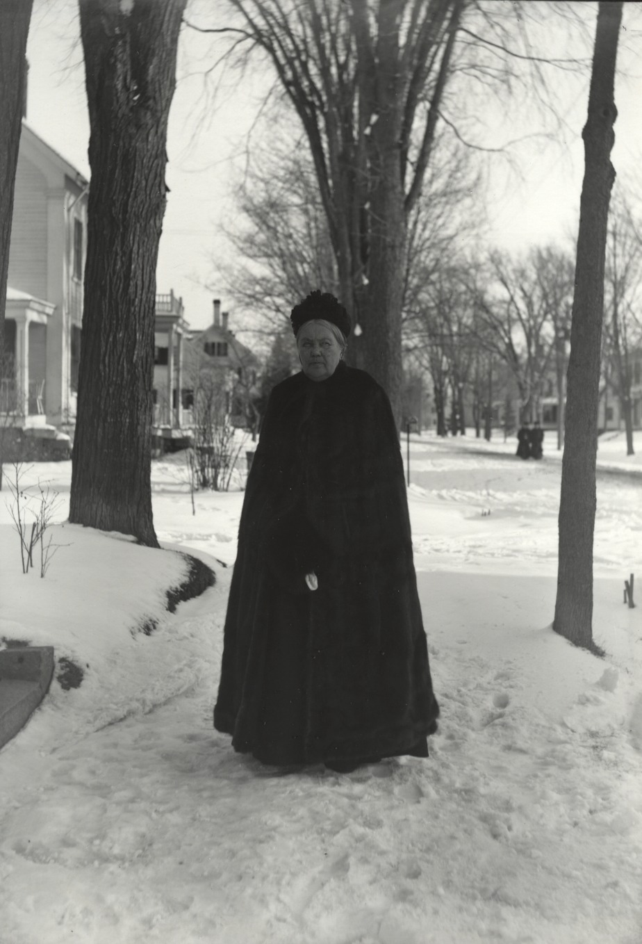 Mrs. Moses Thompson in front of her house, late 1800's.