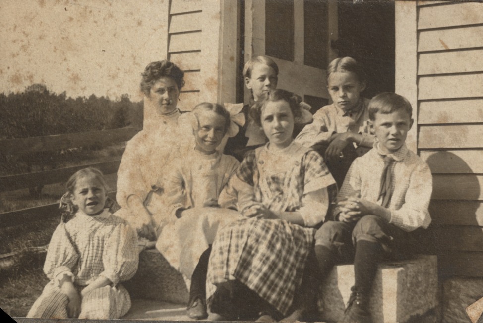 Pine Hill Schoolhouse, teacher Annie (Hersey) Foss and her students, 1909.