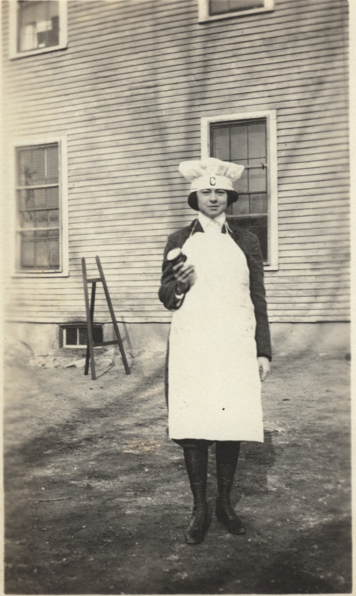 Pickering and Carpenter staff, fashion show. Miss Dott as "Van Campbella Soupe". C. 1920.