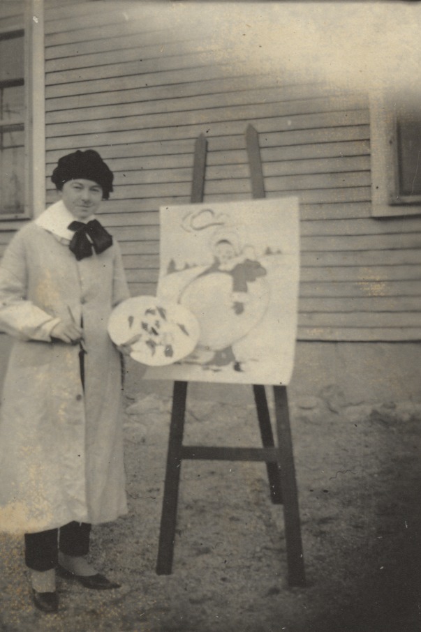 Pickering and Carpenter staff, fashion show. Miss Dott as "The Artist". C. 1920.