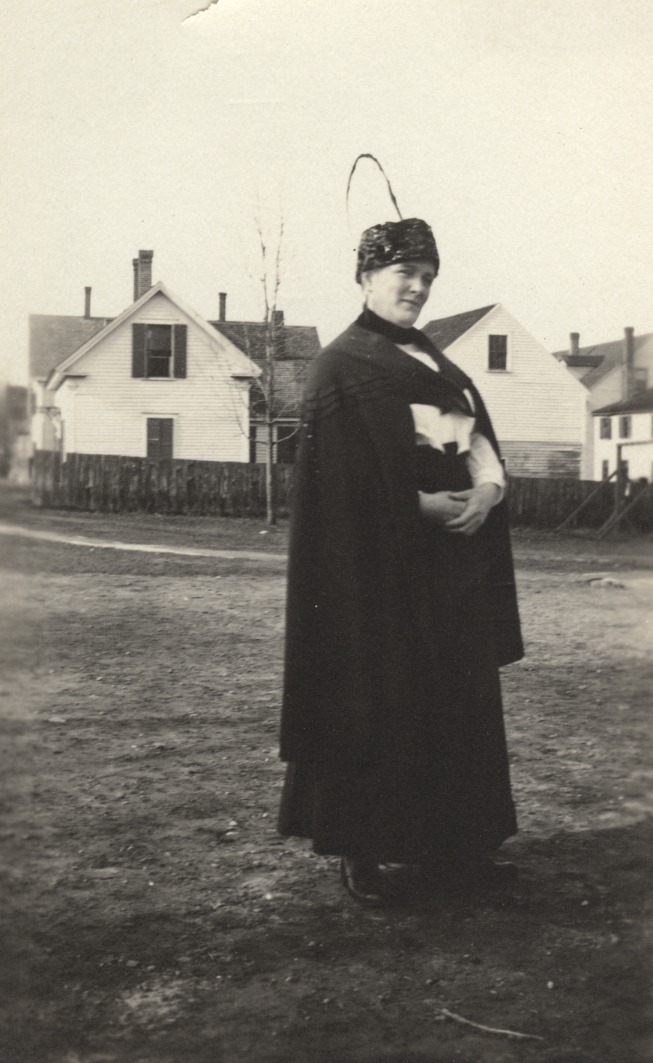Pickering and Carpenter staff, fashion show. Alice Givens as "Fashions for Stout Women". C. 1920.