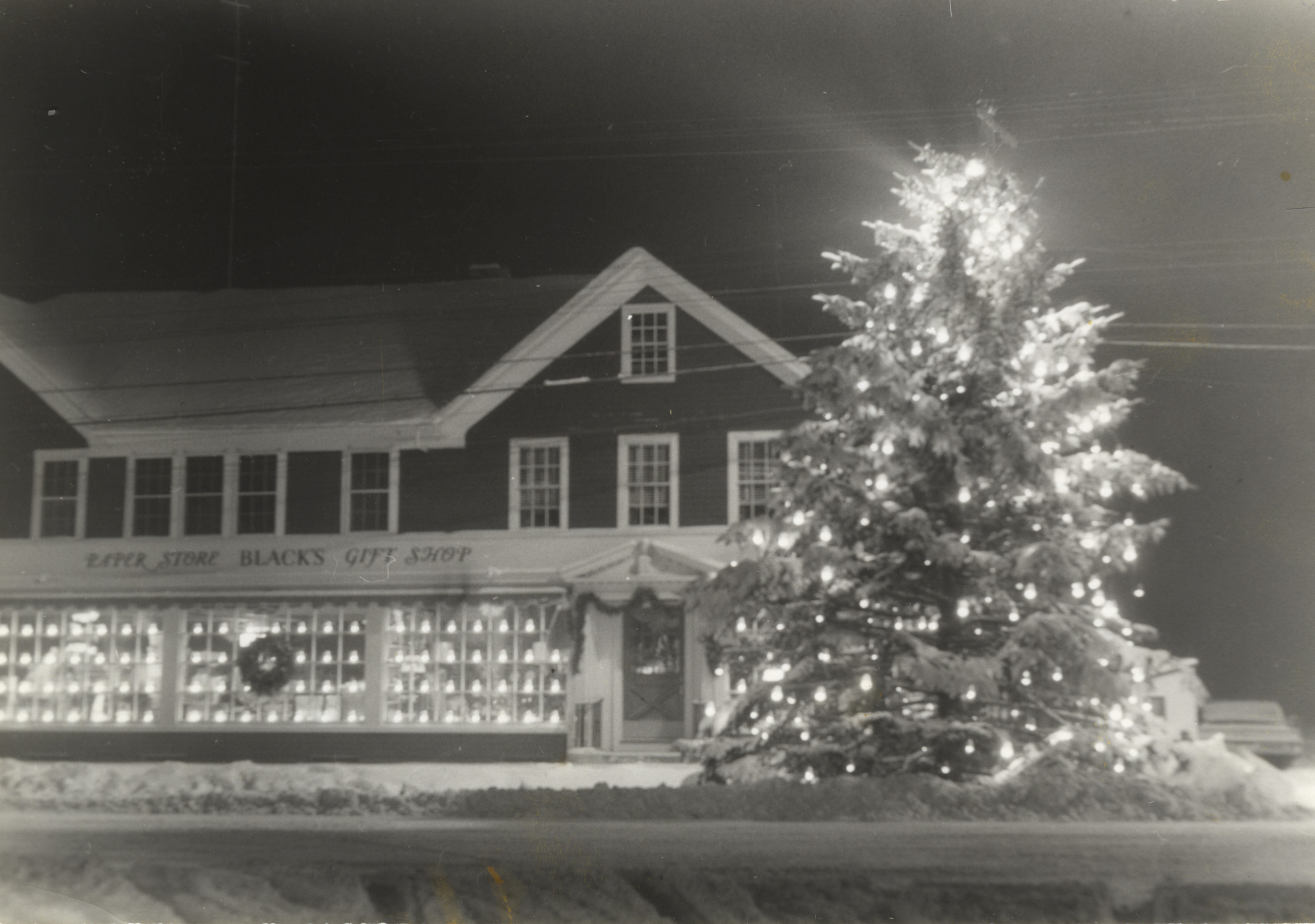 Town Christmas Tree, in front of Black's Paper Store, undated.