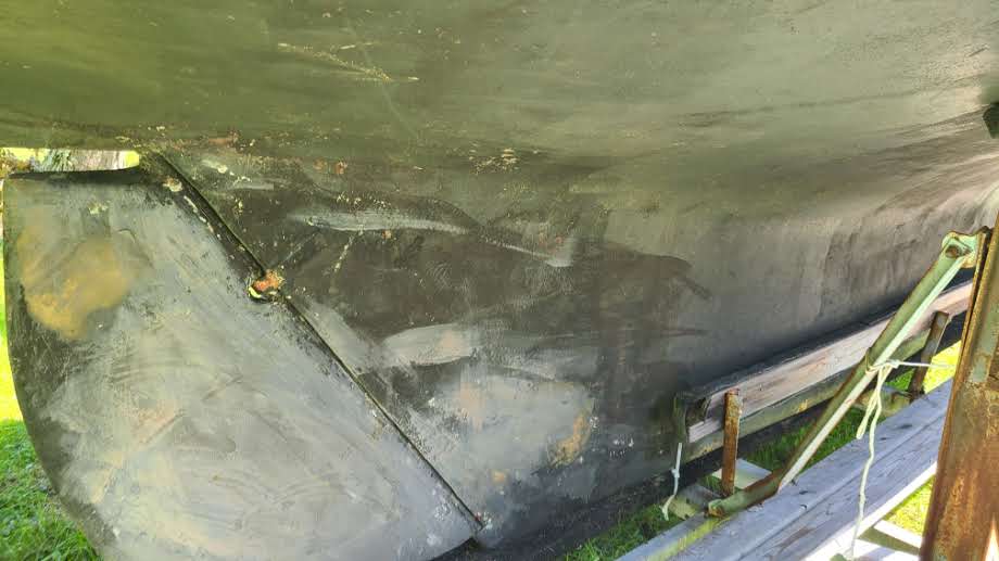 Rudder in good shape. This just showing whats left of pre-season VC 17 touchup on it and the keel