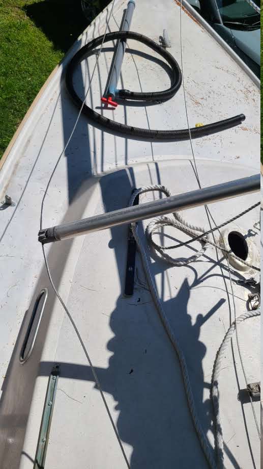Click on this again to see it not quite as distorted. The deck does not have any softspots. Areas around chainplates have been repair on starboard side. Both sides are intact. Deck paint has microcracks or crazing.