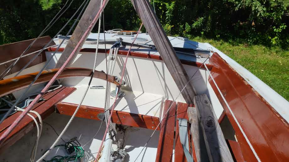 Note the chipped varnish on coaming, otherwise brightwork is in good condition.